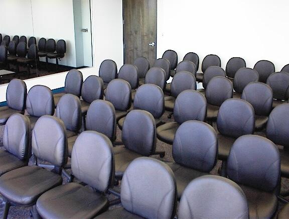 Even with our new large seats, our largest room seats 50 in "Theater Style"